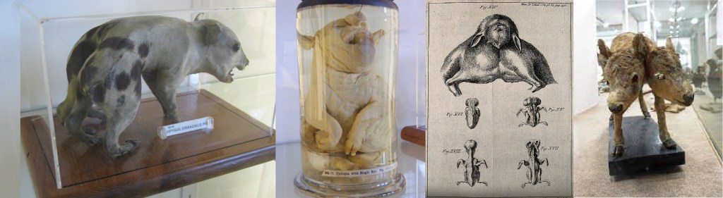 - https://commons.wikimedia.org/wiki/File:BLW_Cyclopian_Pig.jpg Hunterian Museum and Art Gallery Here is a pdf of a paper: The Origin of Cyclopean Monsters. DR. F. E. CHIDESTER. DEPARTMENT OF ZOOLOGY, WEST VIRGINIA UNIVERSITY. The American Naturalist LVII after 1923.