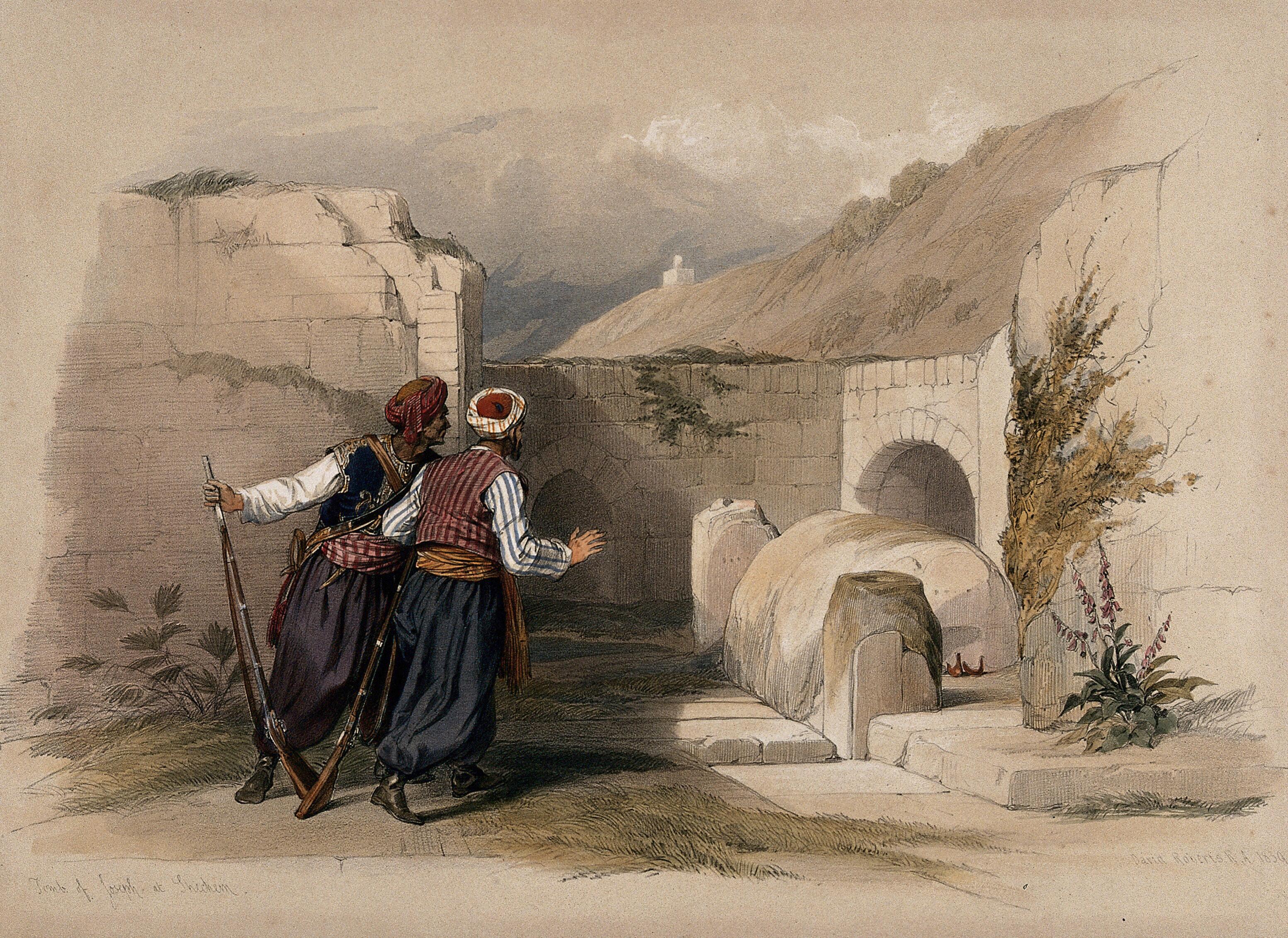 Previous Image Next Image site-of-the-tomb-of-joseph-at-nablus.-coloured-lithograph-by-louis-haghe-after-david-roberts-1842.-1