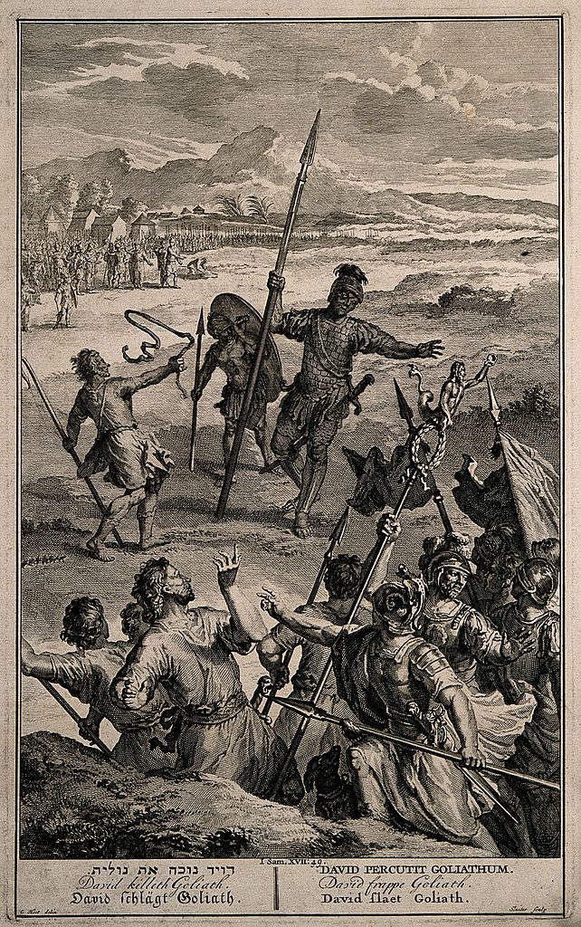 Previous Image Next Image the_combat_between_david_and_goliath._line_engraving_by_p._s_wellcome_v0007103